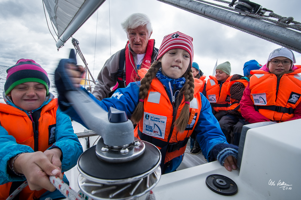 Mehr als 110 Kids und Jugendliche wechselten an diesem Tag vom Klassenzimmer aufs Wasser, zeigten ihr Können an Schoten, Ruder und Segeln und ließen sich auch am Nachmittag von den sintflutartigen Regenschauern nicht entmutigen. Jüngste Teilnehmer waren die Viertklässler aus der Grundschule Strande, die ab der dritten Klasse in die Theorie einsteigen und ab Ostern regelmäßig zwei Stunden Segeln auf dem Stundenplan haben. Auf dem Wasser zeigten die Knirpse dann, dass zwar ein erwachsener Skipper für alle Fälle an Bord sein muss, dessen Platz aber in der meisten Zeit eher im Hintergrund ist.